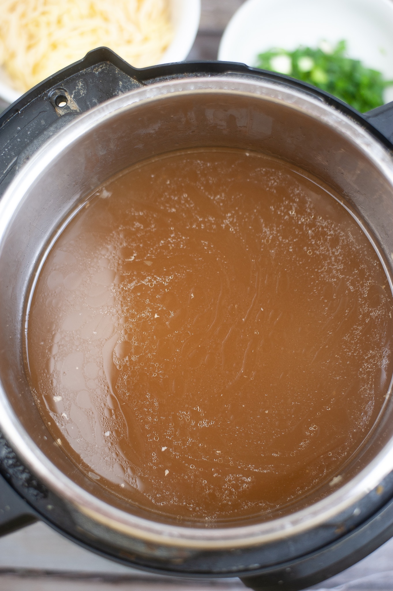 - Place broth, spices, and soy sauce in the instant pot. Cook on high pressure for 0 minutes. Quick release pressure.