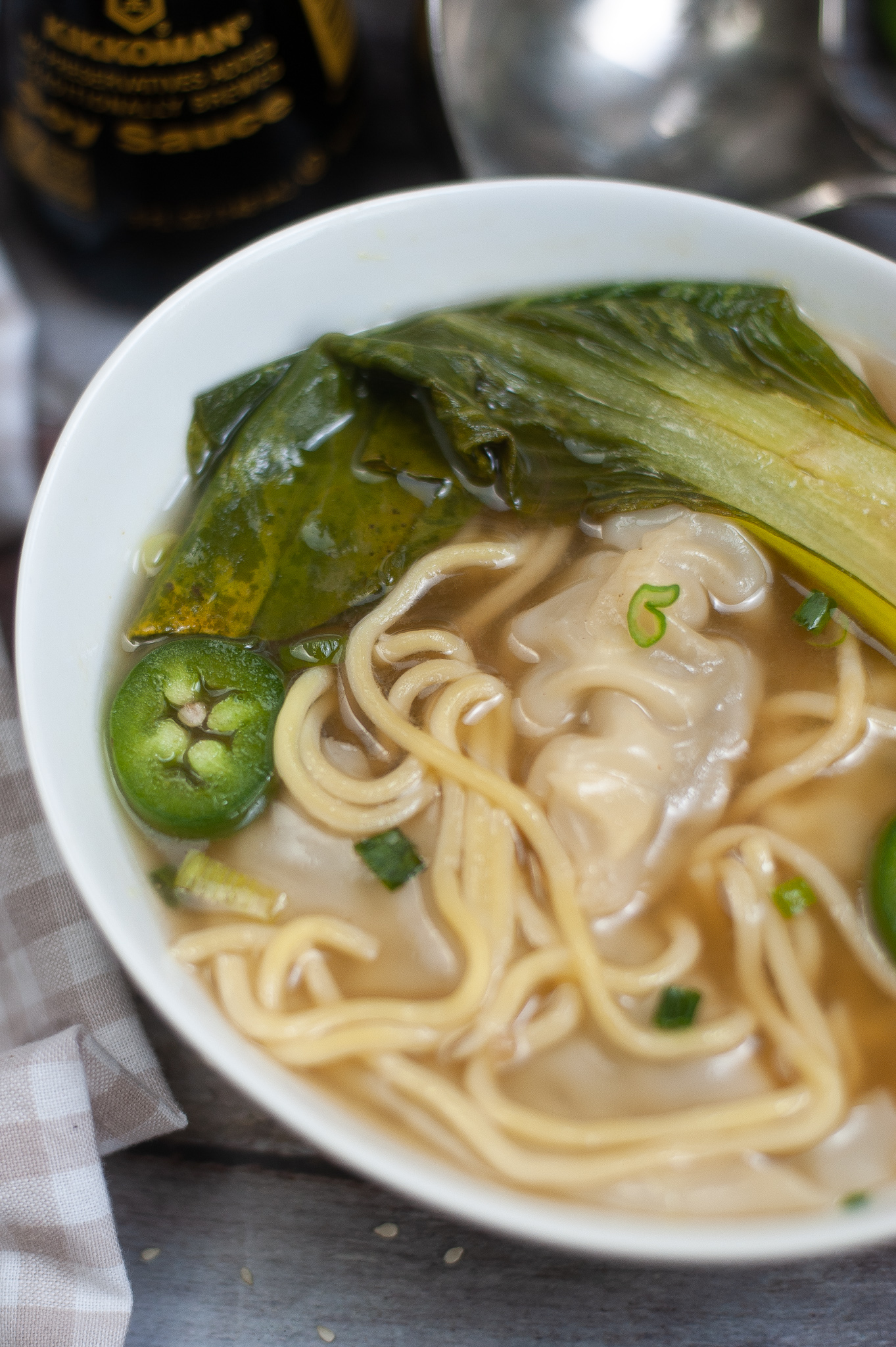 - Baby Bok Choy: Adds crunch, freshness, and nutrients. Softens quickly and pairs perfectly with the dumplings.