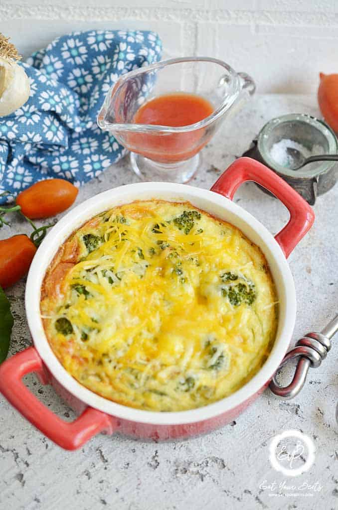 - Place the sausage mixture and broccoli into the baking dish. Pour the egg mixture and sprinkle the remaining cheese.