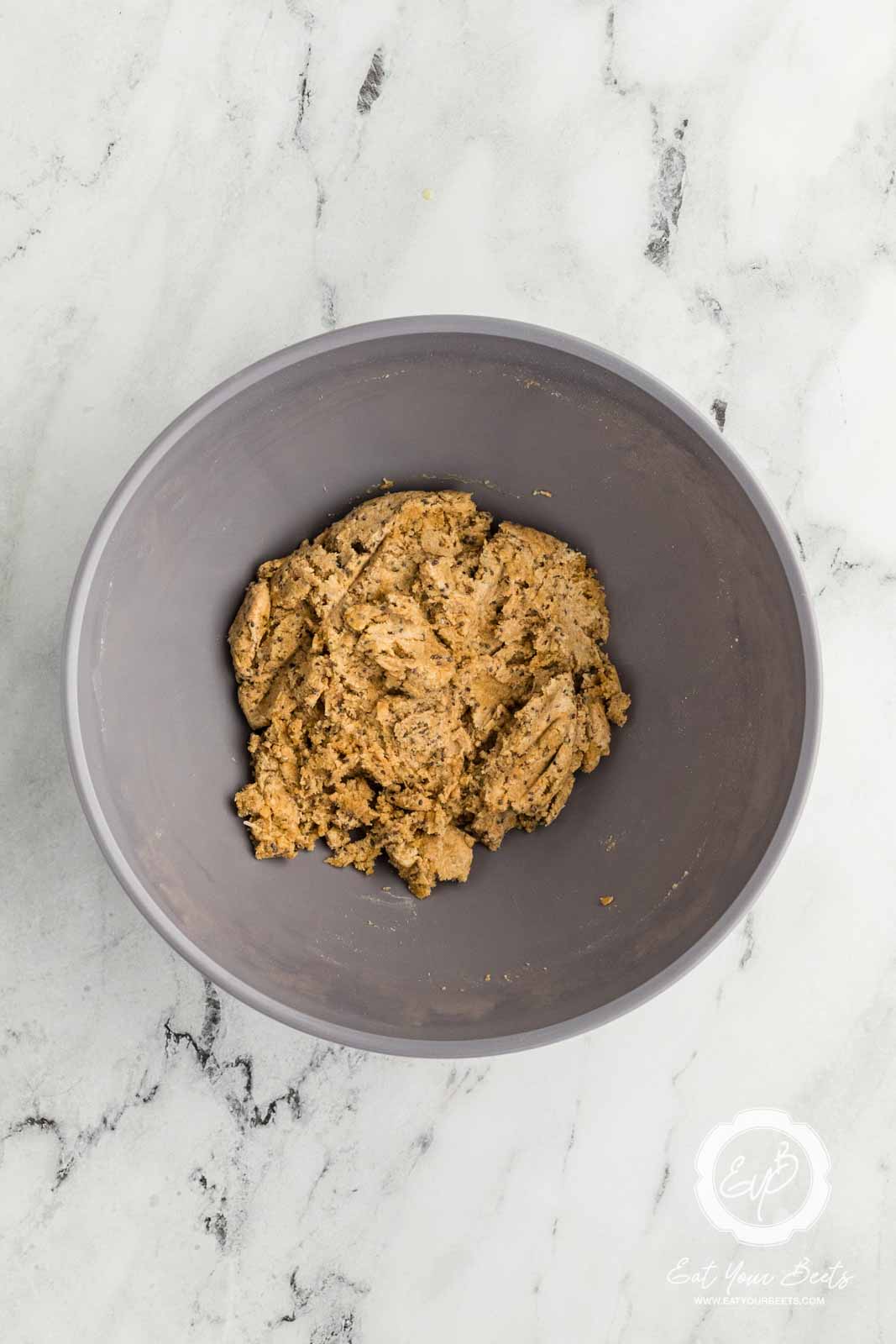 - Step 1: Place the flour, chia seeds, herbs, salt, garlic powder, and parmesan in a mixing bowl. Add the olive oil and water.